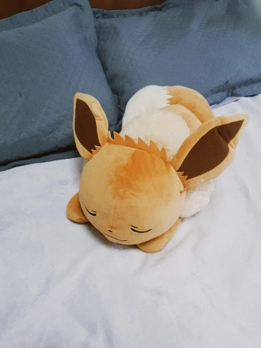 100% new high-quality sleeping Eevee Plush available now at an affordable price. Super soft Eevee pillow buddy, so big and fluffy, Perfect for cuddling